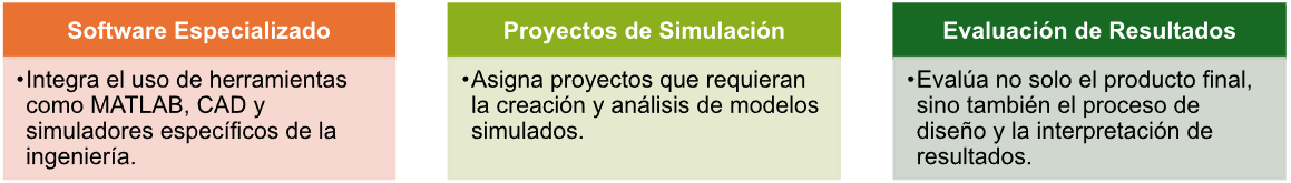 Utiliza software y herramientas de simulación para que los estudiantes puedan diseñar, probar y optimizar sistemas y procesos.