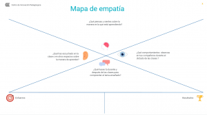El mapa de empatía es una herramienta poderosa que nos permite conocer al usuario, en este caso a nuestros estudiantes con los que aplicaremos la innovación.