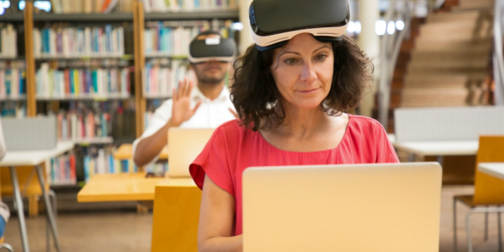 DALL·E 2024- Visual image that represents a teacher interacting with a student in augmented reality.webp [Imagen generada por IA].