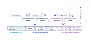 - Fase de diseño interactivo: El docente planifica y diseña los recursos y materiales didácticos que empleará para el desarrollo del curso, siguiendo un método pedagógico. En esta fase se irá diseñando, prototipando y revisando los materiales propuestos.