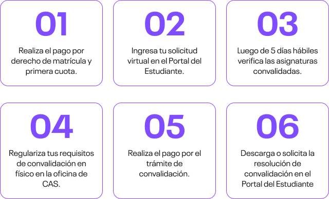 Si en tu certificado académico ya aparecen cursos como «Convalidados», también deberás presentar los requisitos de ambas instituciones donde cursaste estudios, así como la resolución de convalidación de tu institución de procedencia.