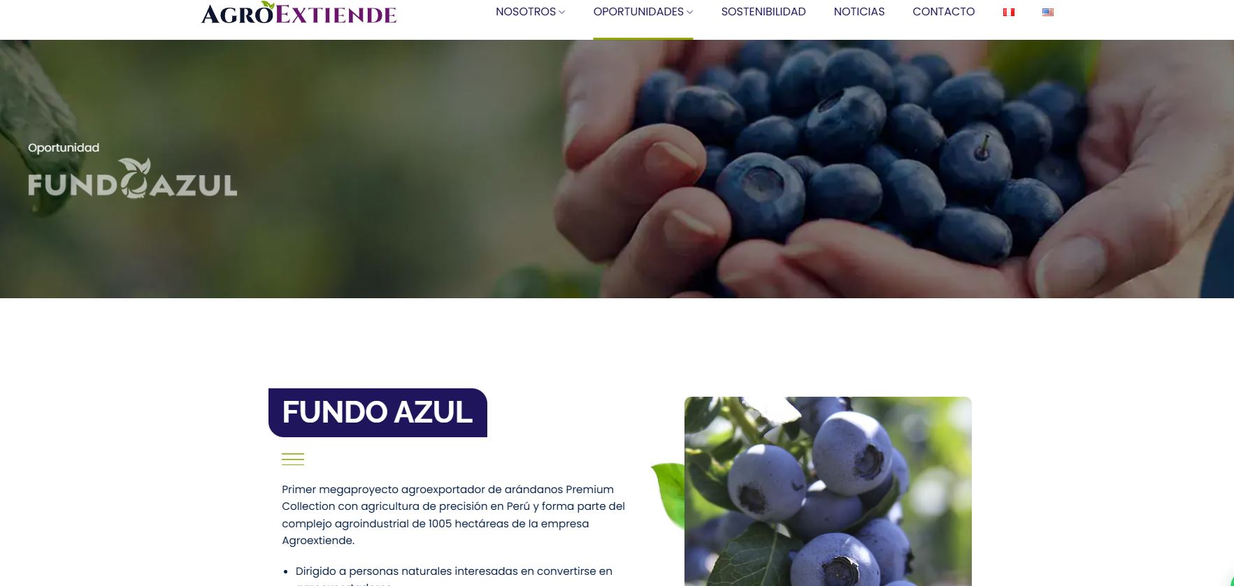 En un contexto global de alta demanda por alimentos saludables y sostenibles, Fundo Azul, parte de AgroExtiende, ha emergido como un modelo innovador en la agroexportación de arándanos premium. Ubicado en Piura, Perú, este proyecto integra prácticas de agricultura de precisión, sostenibilidad y un modelo de negocio inclusivo, marcando un hito en la agroindustria peruana.